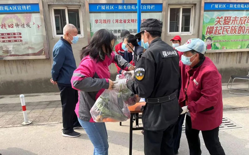 在全面封控管理的第四天(4月28日),考慮到連續封控期間,業主足不出戶,家里的各類物資供應成了一大難題,在中誠房地產公司勇于承擔社會責任的大愛倡議下,安排廣廈物業公司為競秀區及蓮池區在管12個項目3000余戶業主免費贈送“愛心蔬菜包”。